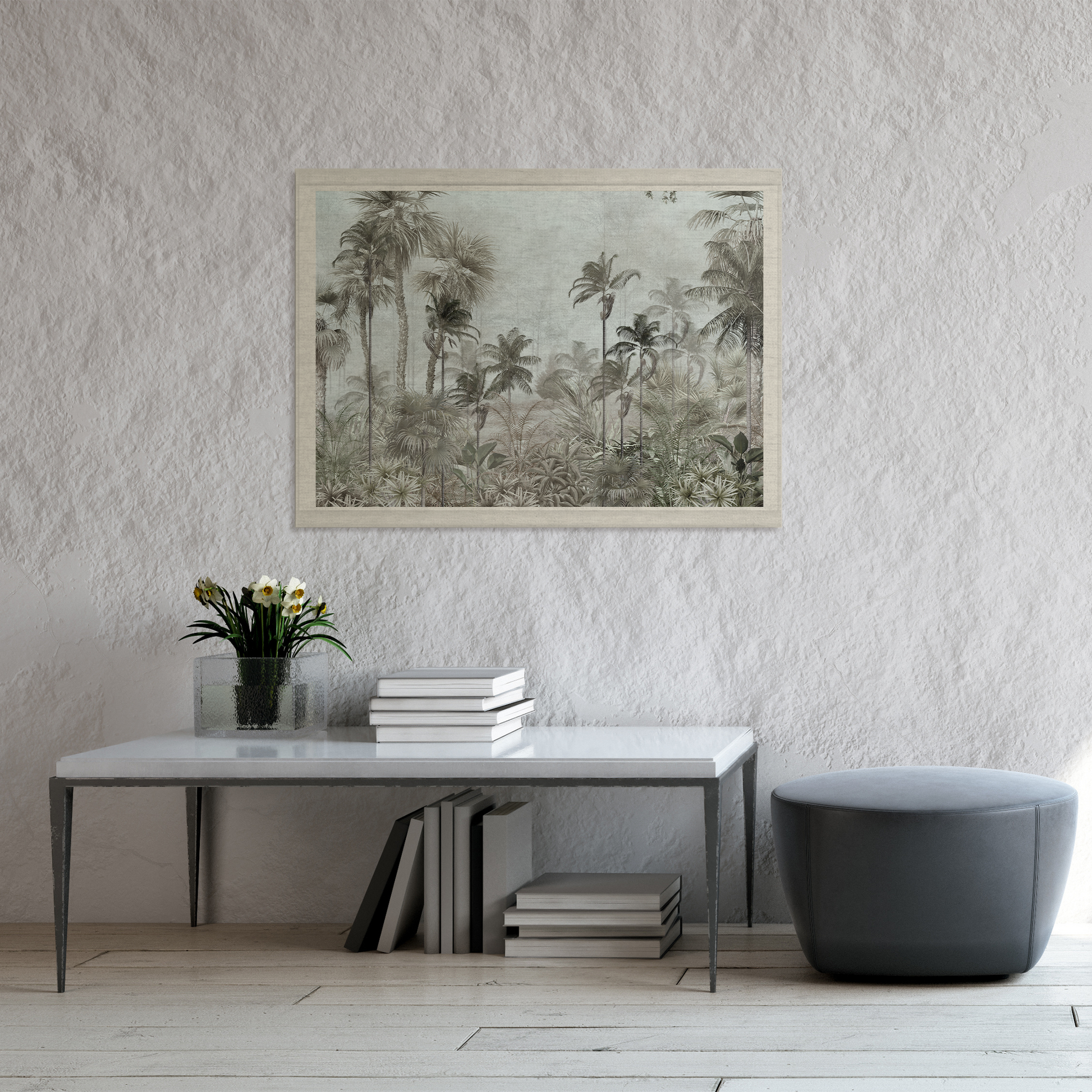 Introduce tranquillity with our serene wall-hanging that paints a calm scene of palm trees in soothing blues and greens. This piece promises to be a serene retreat for your walls. The easy-to-use fixtures ensure quick hanging, while its roll-up nature is perfect for renters and those wishing to gift a piece of art to someone on the move.