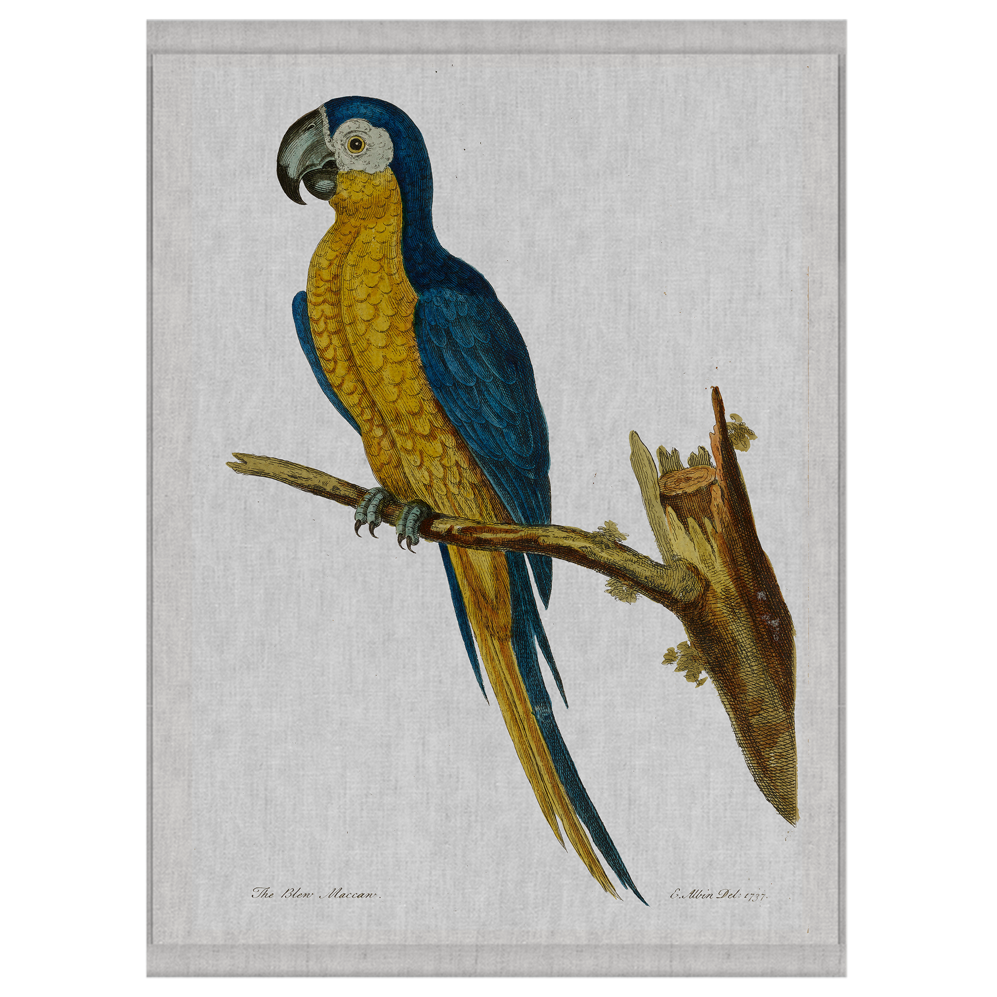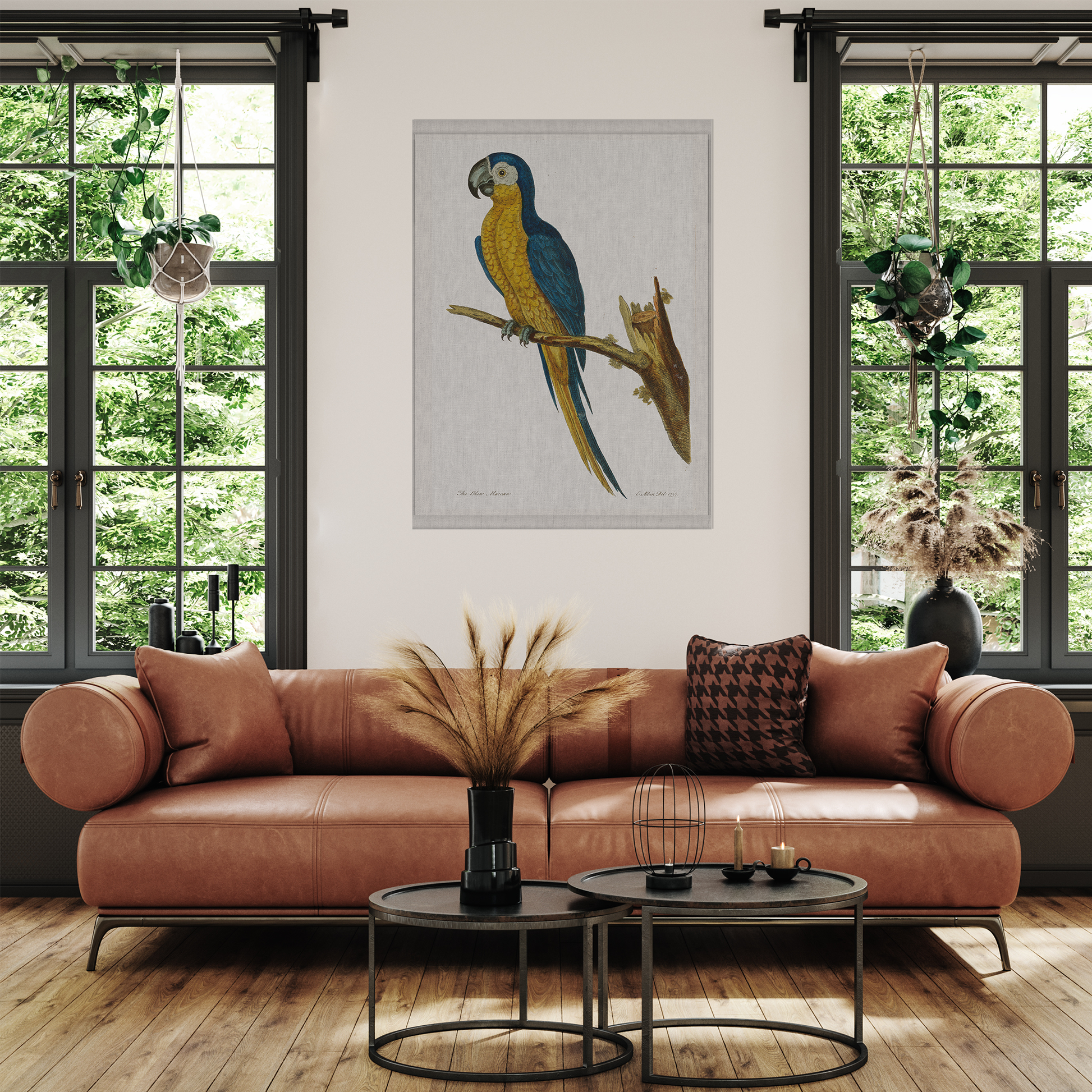 Elevate your space with the vibrancy of our wall-hanging, featuring a bright blue and yellow parrot proudly perched on a branch. Easily hung and ready to transform any space, its roll-up design is perfect for those on the move or looking to gift a piece of the tropics to someone special.