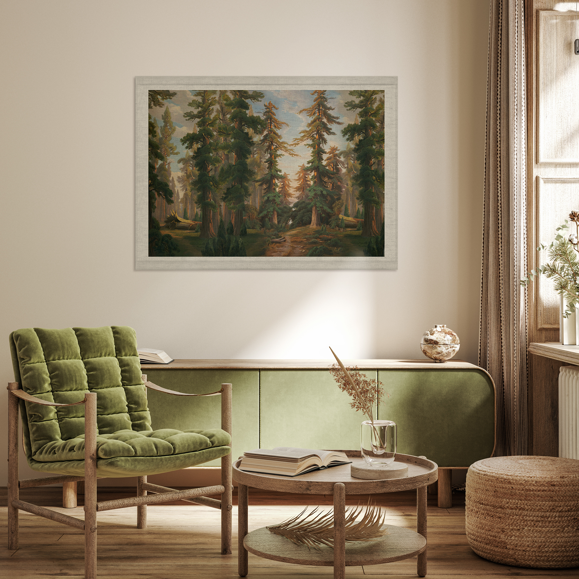 Embark on a serene journey with our "New Heights" textured wall-hanging. Journey into the heart of a forest where ancient trees reach skyward, their branches testifying to the epochs they've witnessed. The painting captures the diverse hues of the forest, from lush greens to autumnal golds. A beckoning path and a solitary bench invite introspection. The soothing ambience is further accentuated by a gentle stream winding its way. With easy-to-hang fixtures, setting up this piece is a breeze. Ideal for renters and those who prefer non-permanent décor, its rollable nature also makes it an ideal travel gift.